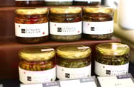 ジャムやソース、ドレッシングやディップといったCaféBoneu 店内でも使用している調味料を販売。オープン以来販売しているジャムの特徴は果肉感、そして黒胡椒。水あめやゲル化剤などは使わずにフルーツと砂糖のみで作るので、たっぷりの果肉感が楽しめます。そして何より特徴的なのはやっぱり黒胡椒ですね。東京のある洋菓子屋さんで見つけたコンポートをヒントにジャム黒胡椒を合わせました。いまではBoneuジャムにはなくてはならない存在となりました。